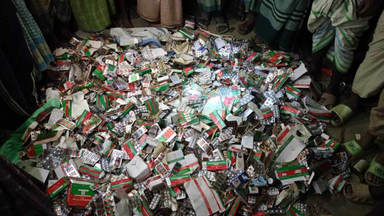 সিরাজগঞ্জ প্রতিনিধিঃ নর্দমায় পাওয়া গেল শাহজাদপুর উপজেলার পুটিয়া উপ-স্বাস্থ্যকেন্দ্রের সরকারি ওষুধ।উপজেলার পোরজনা ইউনিয়নের পুটিয়া উপ-স্বাস্থ্যকেন্দ্রের পাশের পচা নর্দমায় প্রায় লক্ষাধীক টাকার ২ বস্তা পরিমান অসংখ্য সরকারি ওষুধ পরিত্যক্ত অবস্থায় পাওয়া যায়।